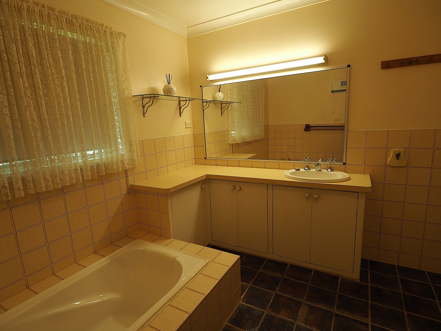 The main bathroom has a shower, bath, vanity and toilet and is located between the two secondary bedrooms.