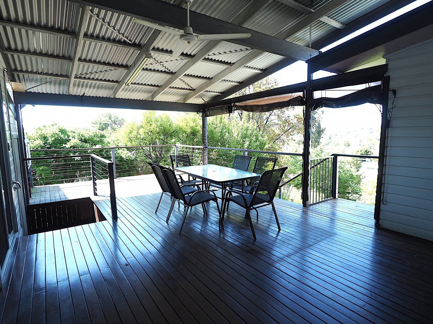 The entertainment deck with fly over roof and access from the kitchen/dining room via sliding glass doors for easy catering.