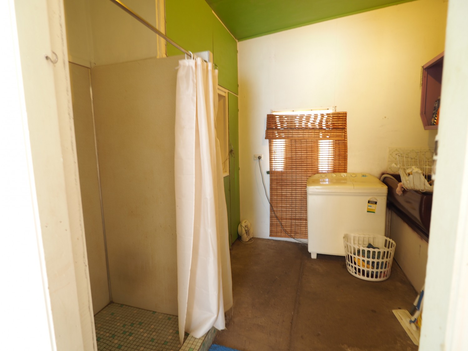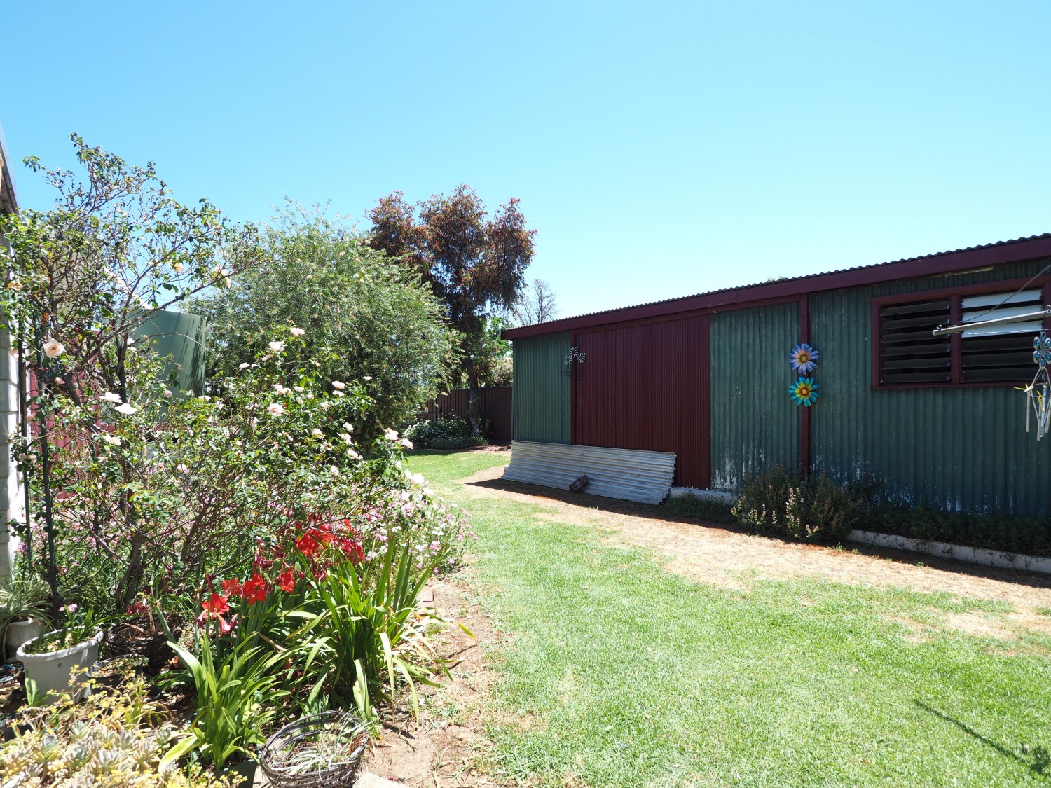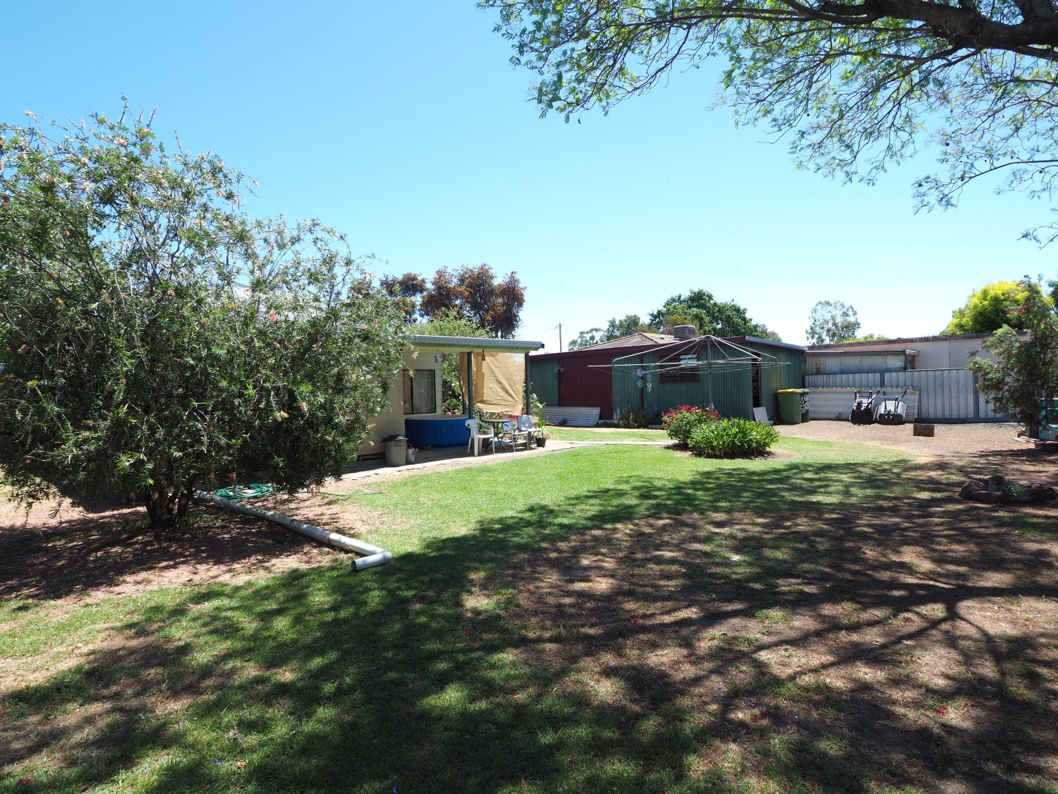 Fully fenced yard and corrugate iron garage with attached workshop.
