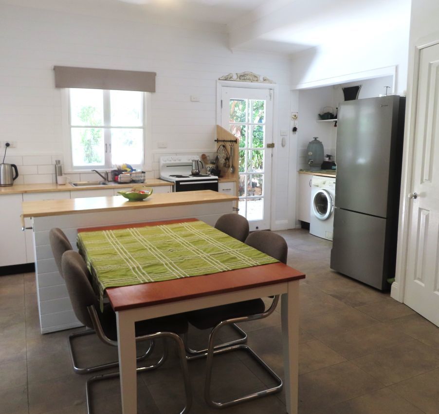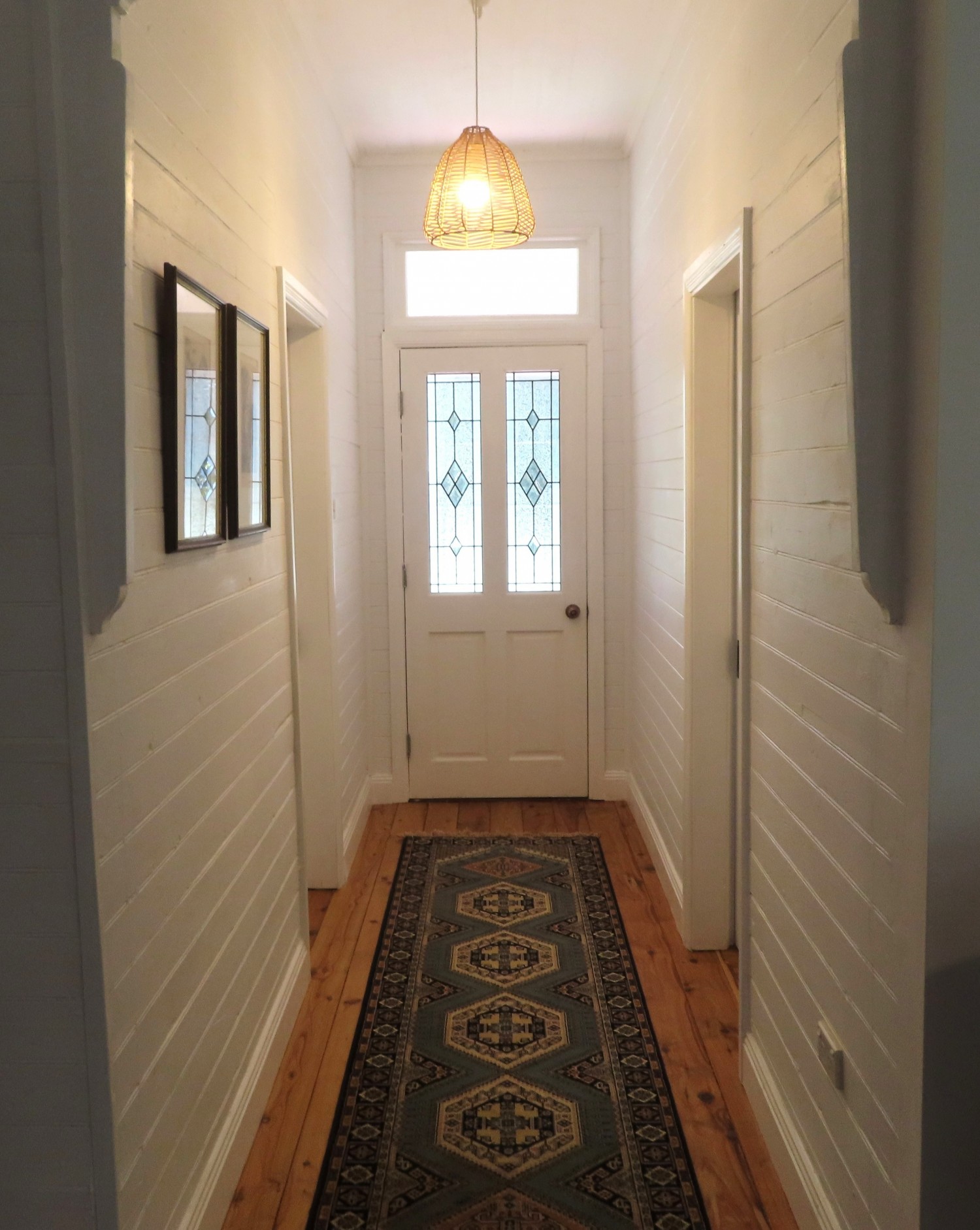 Through the front door into the original wide hallway with polished cypress pine floorboards and a bedroom on either side. The polished floors with underfloor insulation, continue on into the dining/living room also with wood heater and R/C air conditioning and lead onto the tiled renovated kitchen with upright electric stove, island bench, good sized pantry and adjacent laundry alcove.