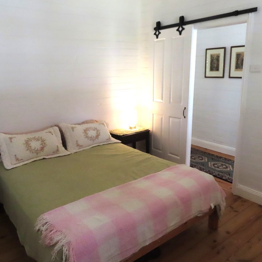 A corrugated iron workshop/ garage sits to the side of the self-contained flat.