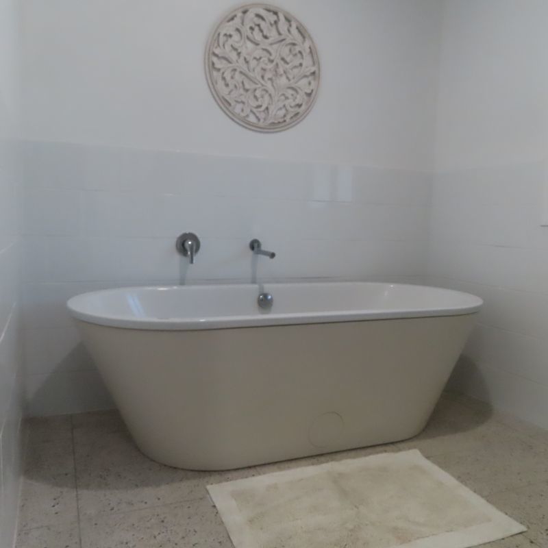 Gorgeous new bathroom boasting a full-size bath, walk in shower plus vanity and separate toilet.